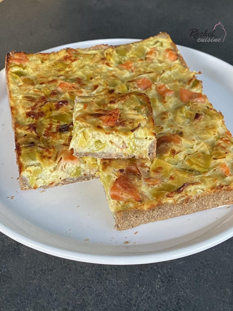 J’ai suivi la recette à la lettre mais la pâte était très collante. J’ai rajouté de la farine tout en pétrissant jusqu’à ce qu’elle devienne plus souple et résultat impeccable. Étalée au rouleau, avec poireaux et saumon (j’ai mis 200g). On s’est régalé, même mes ados qui sont très difficiles. Merci beaucoup Rachel