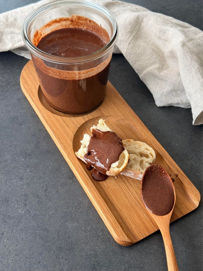 Vraiment trop bon, l’essayer c’est l’adopter, je vous assure ! La texture est plus liquide que la version « Nutella » classique, perso je préfère. Mais n’hésitez pas à mettre le pot au réfrigérateur pour une texture plus ferme.